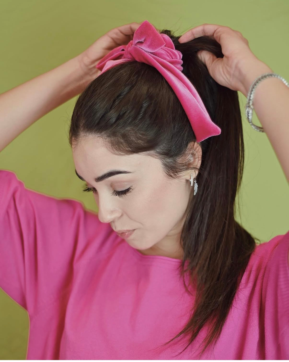 La tenuta è stabile ma delicata, ideale per raccogliere i capelli senza stressarli, spezzarli o lasciare segni. Il velluto, morbido al tatto, protegge la fibra capillare e garantisce comfort per tutta la giornata.